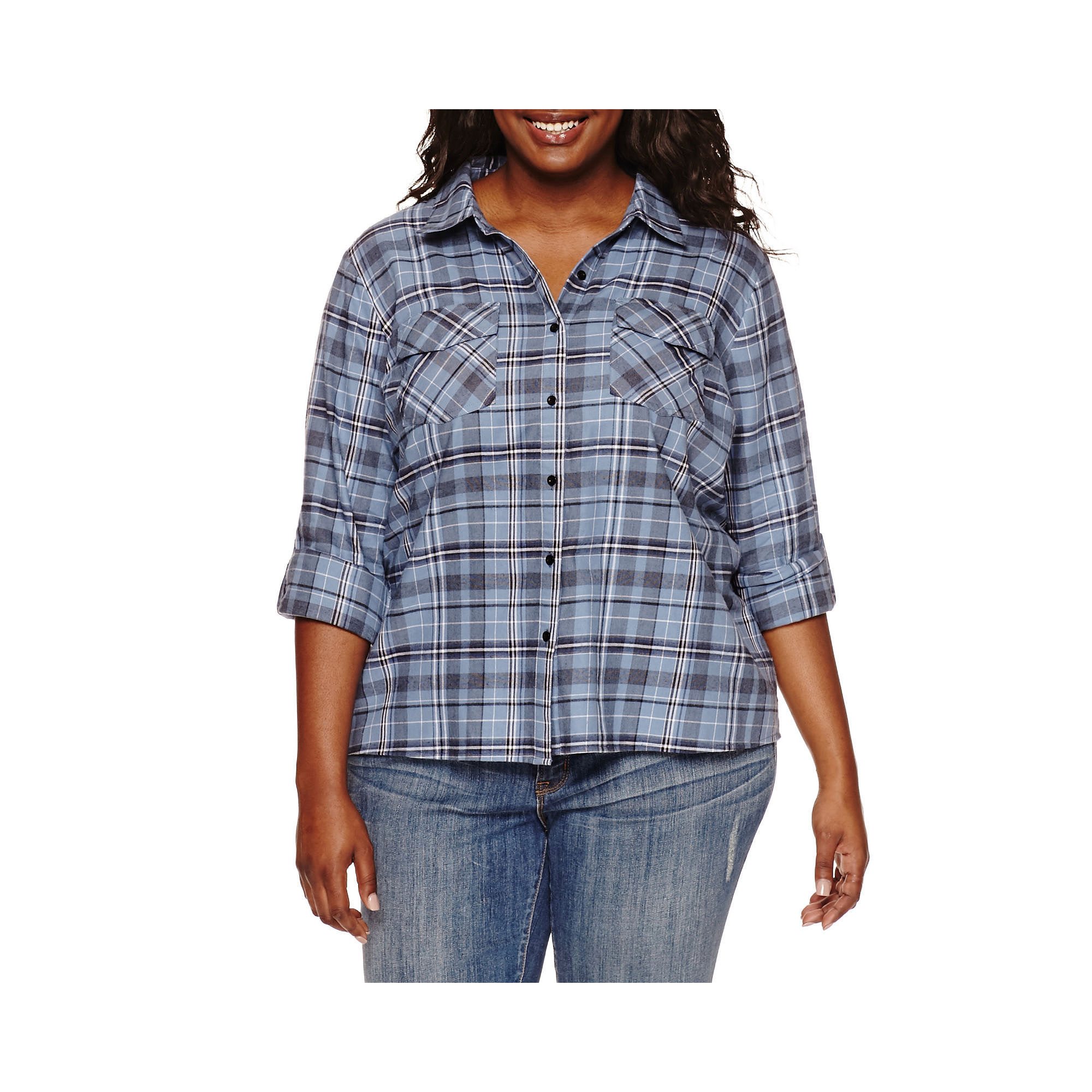 Special Offer Embossed Plaid Button-Front Top - Juniors Plus Before Too Late