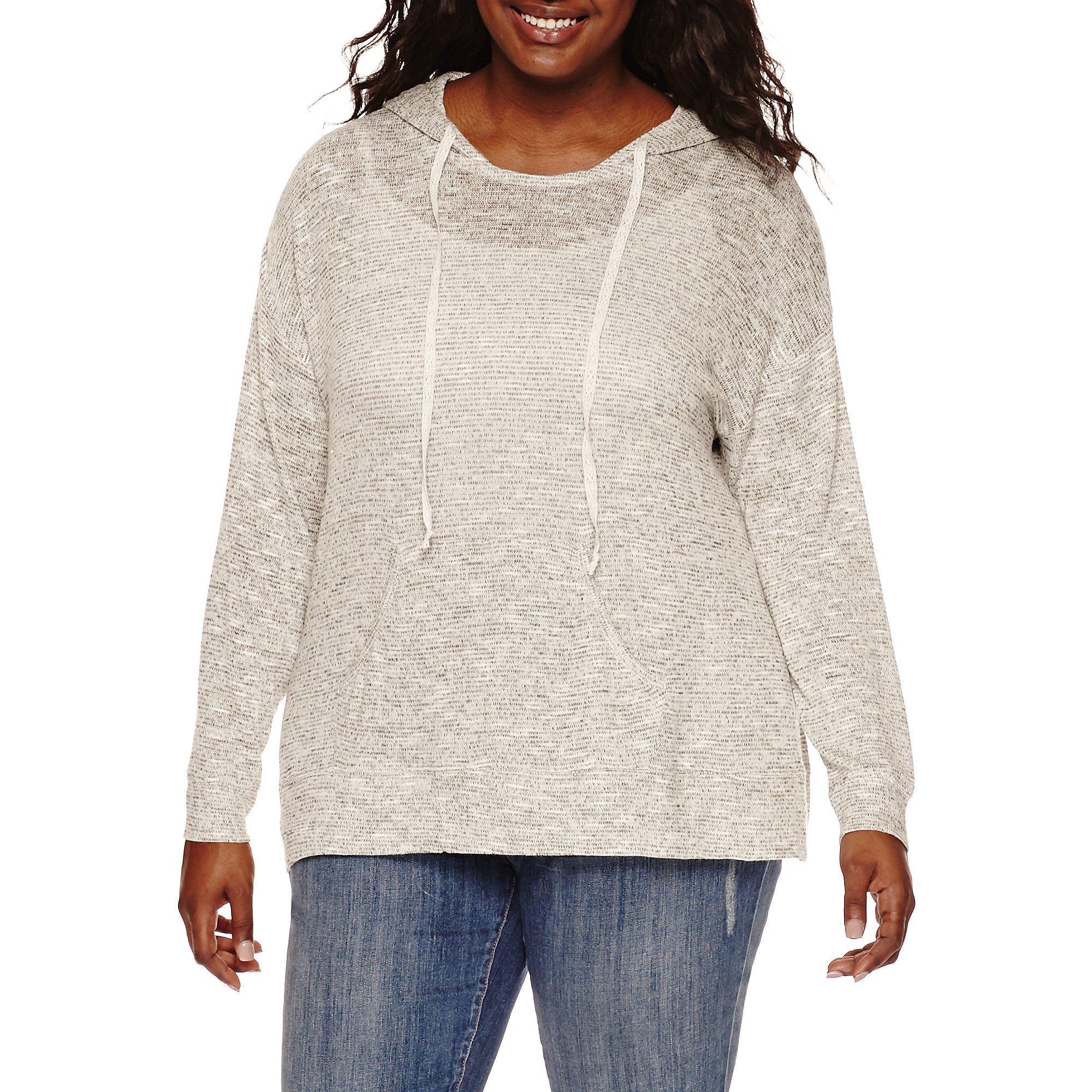 Special Offer Embossed Long-Sleeve Marled Hacci Pullover Hoodie - Juniors Plus Before Too Late