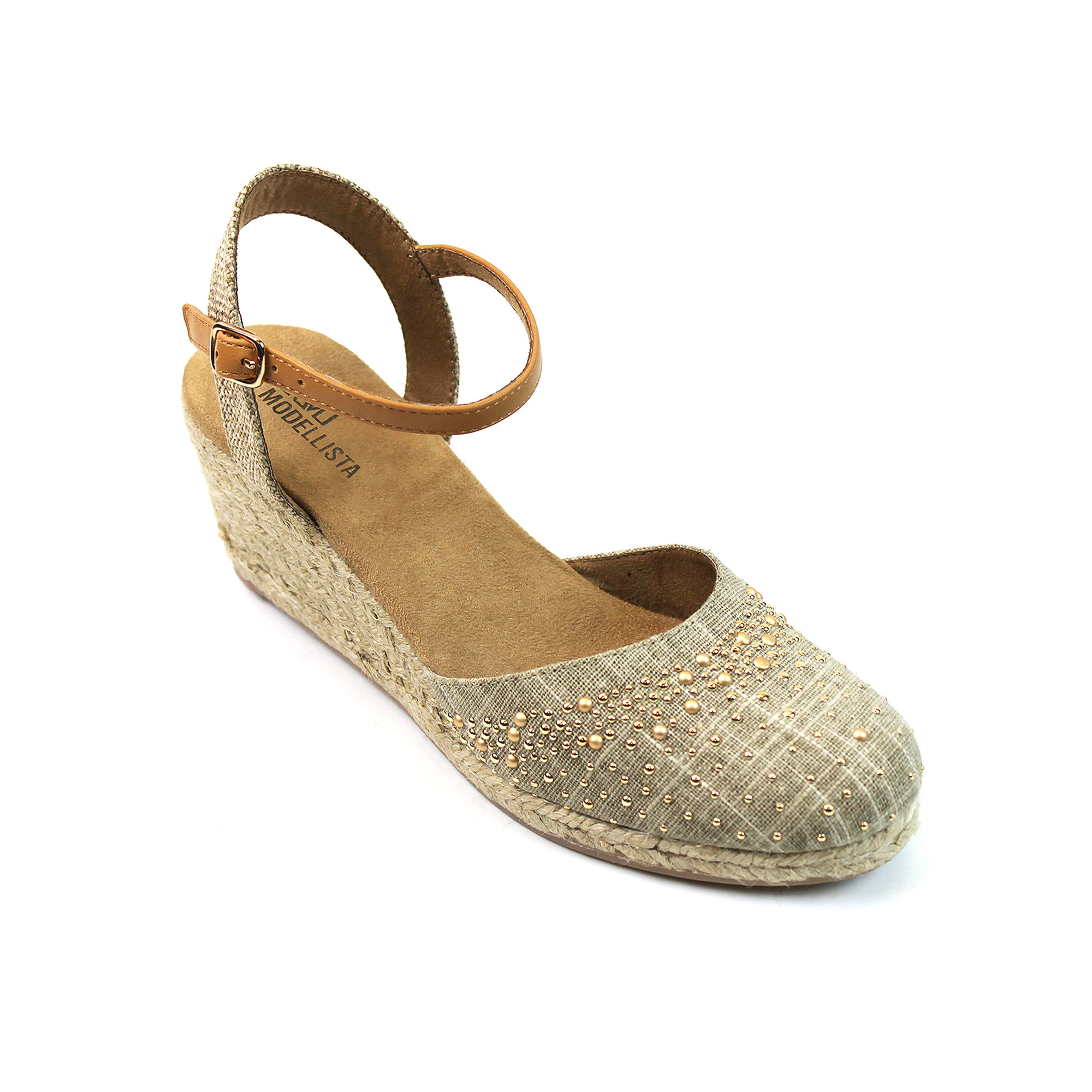 canvas/synthetic upper 2" wedge heel adjustable ankle strap sparkling embellishments synthetic sole
